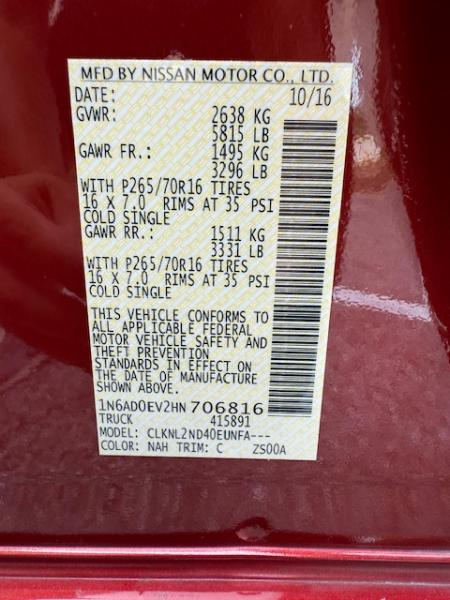Vehicle Inquiry for 2017 Nissan Frontier SV Crew Cab 5AT 4WD